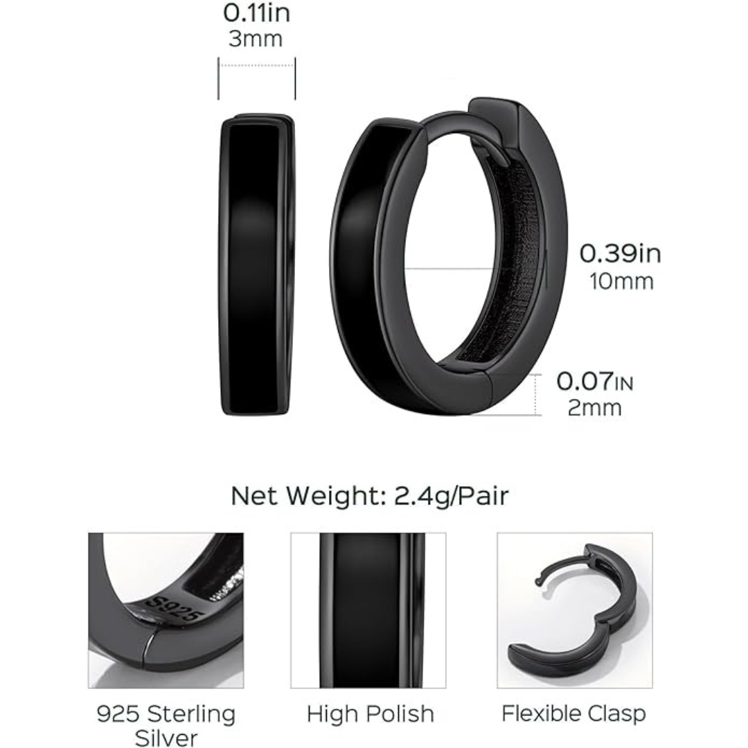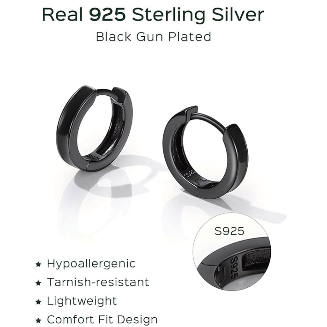 Add a sleek, modern touch to your look with these black 925 sterling silver hoop earrings for men. Crafted from high-quality sterling silver, these hoops are hypoallergenic, lead-free, and safe for sensitive skin, making them ideal for everyday wear.